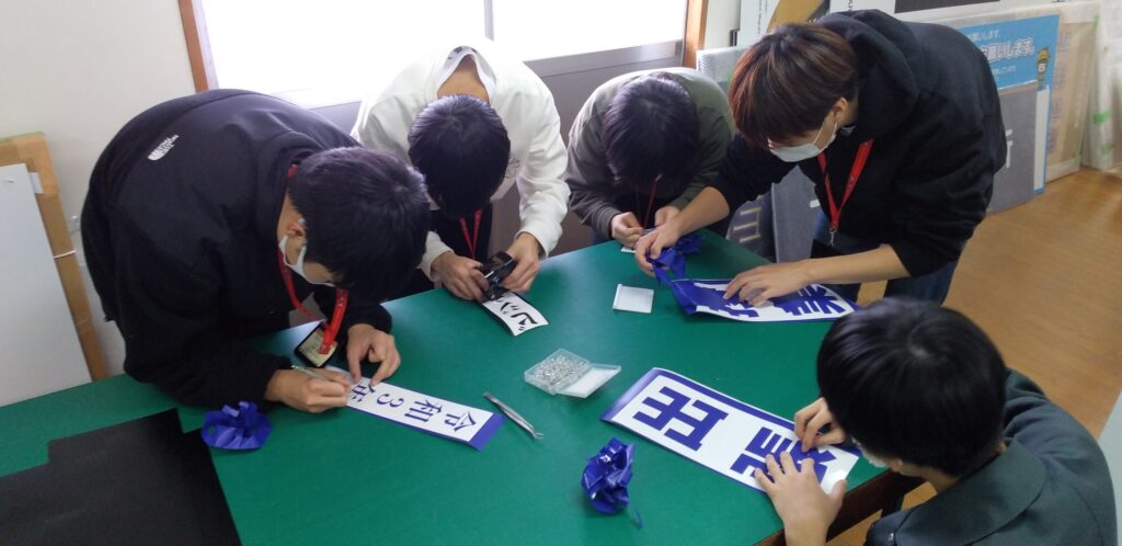 2021年12月10日 企業情報 体験授業を行いました。 12月2日(木)に新潟ビジネス専門学校イベントビジネス学科の1年生が授業の一環で来社され、弊社の業務の一部を体験いたしました。 製作部製作課 製作部製作課(表具) 製作部製作課(サイン製作) 製作部製作課(サイン製作)